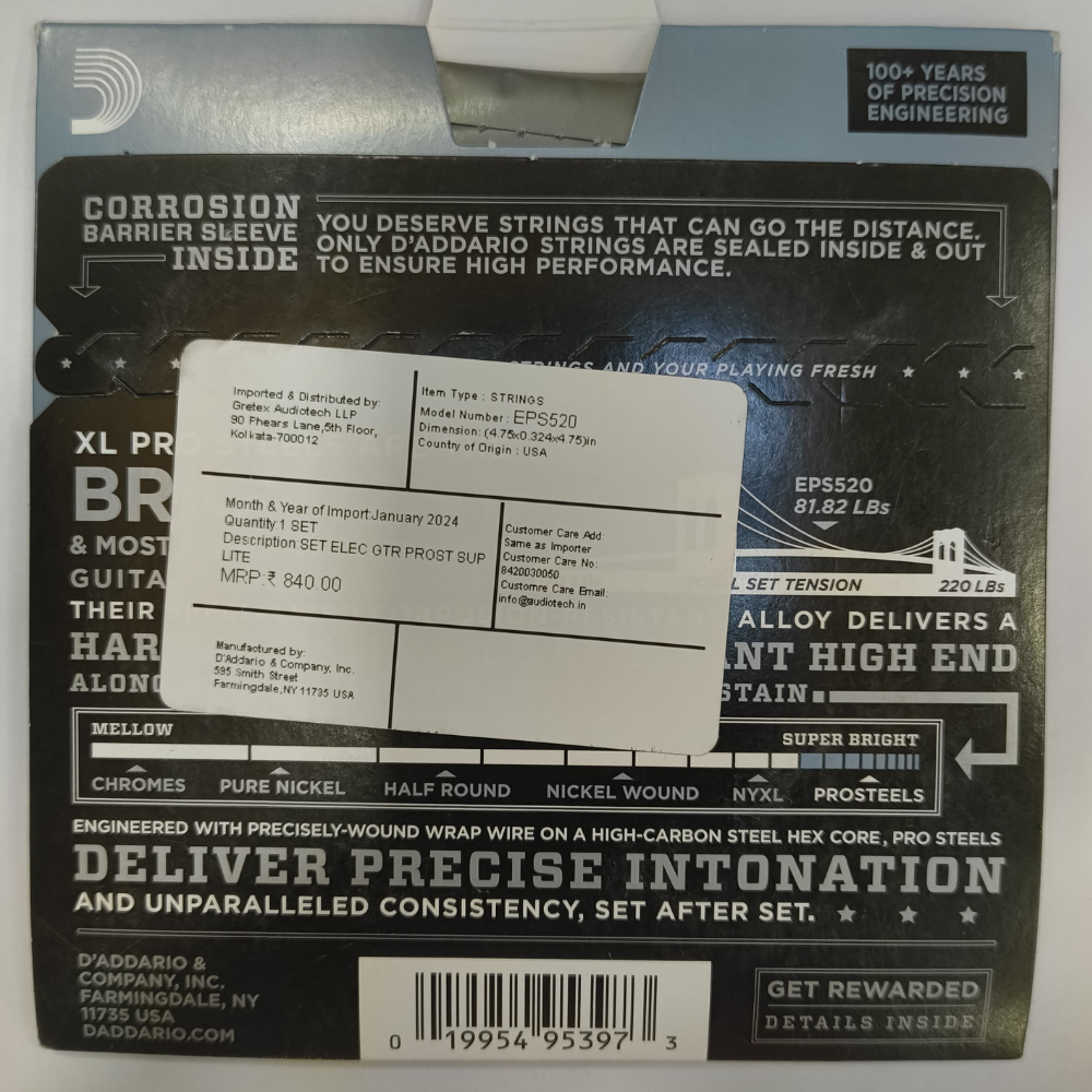 Unleash super-bright, crunchy tones and incredible sustain with D’Addario EPS520 ProSteels Electric Guitar Strings. Their super light gauge (9-42) offers extreme flexibility and easy bending, making them ideal for modern rock, metal, and players who love a cutting, aggressive sound. Made in the USA for ultimate quality.