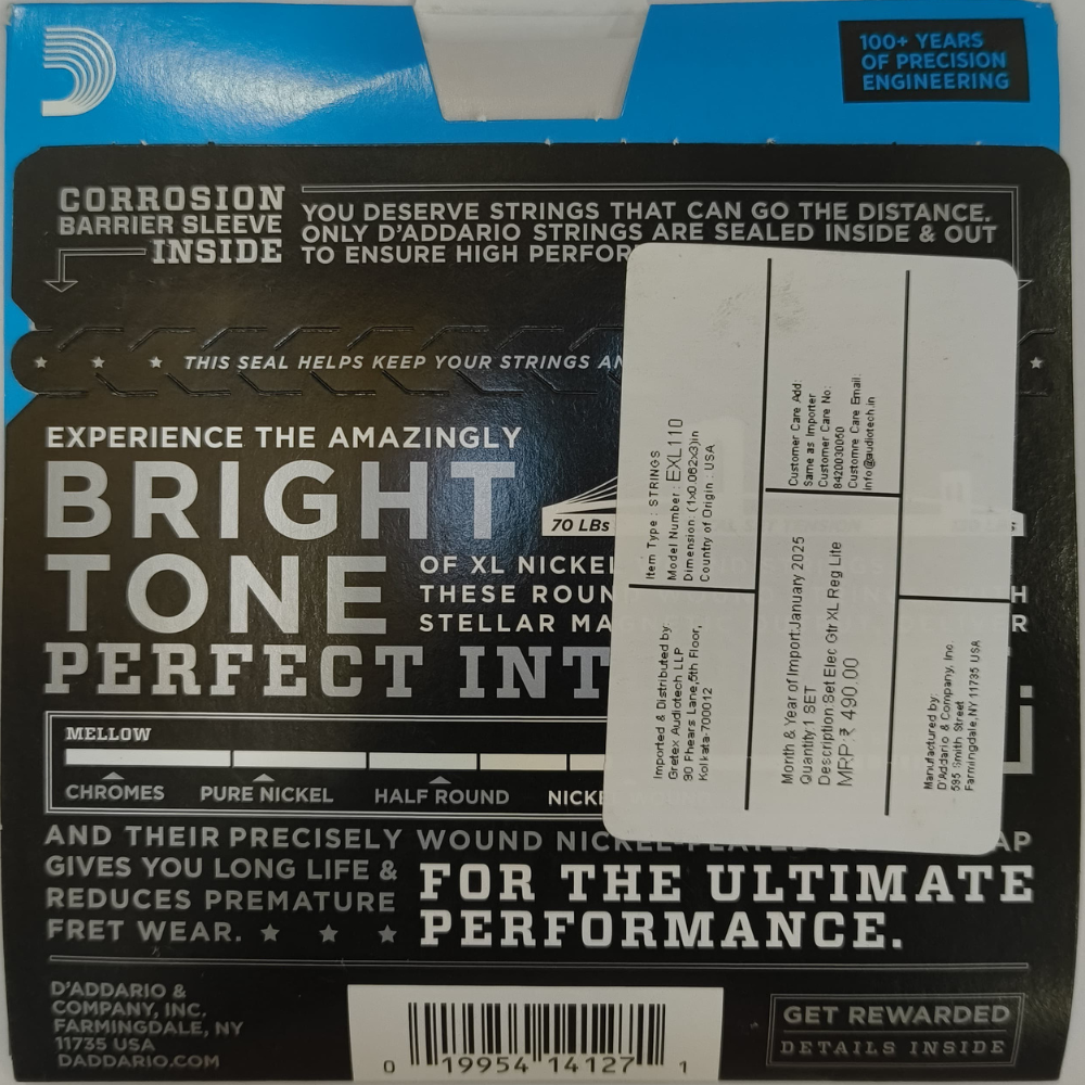 Be the first to review “D’Addario EXL110 XL Nickel Wound Electric Guitar Strings – Regular Light (10-46)”