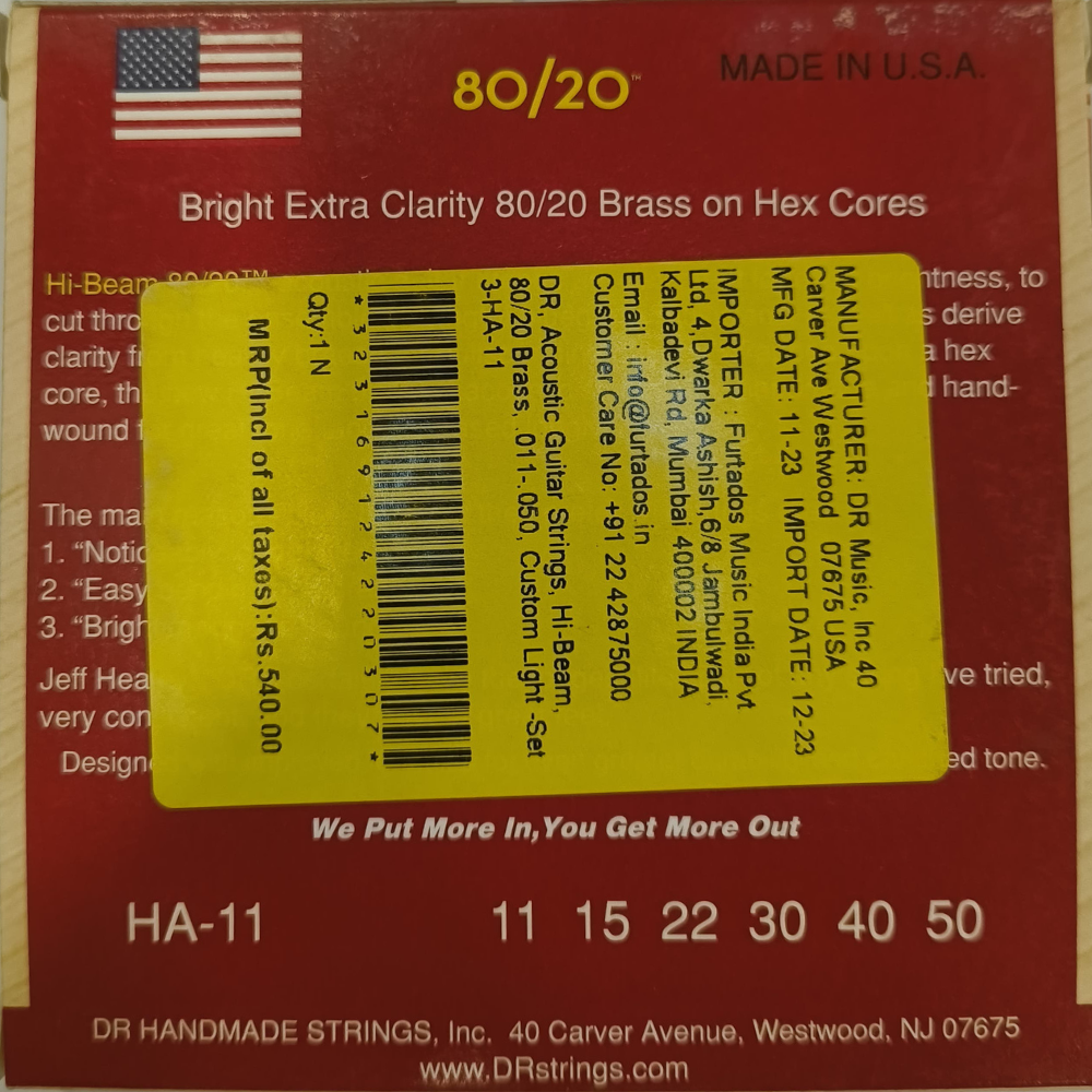 DR Strings 80/20 Bronze Acoustic Guitar Strings – Custom Light (11-50)